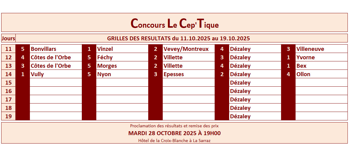 Expo de Coss - Le Cep'Tique - Résultats du 12 octobre 2025